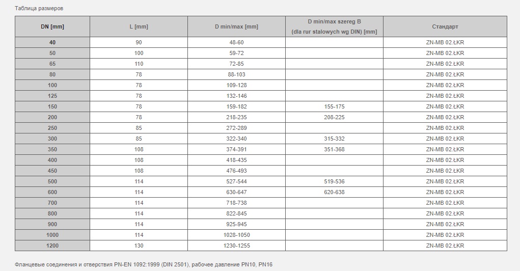Корпус (чугунные элементы, сфероидальный чугун согласно стадндартам PN-EN 545:2010)