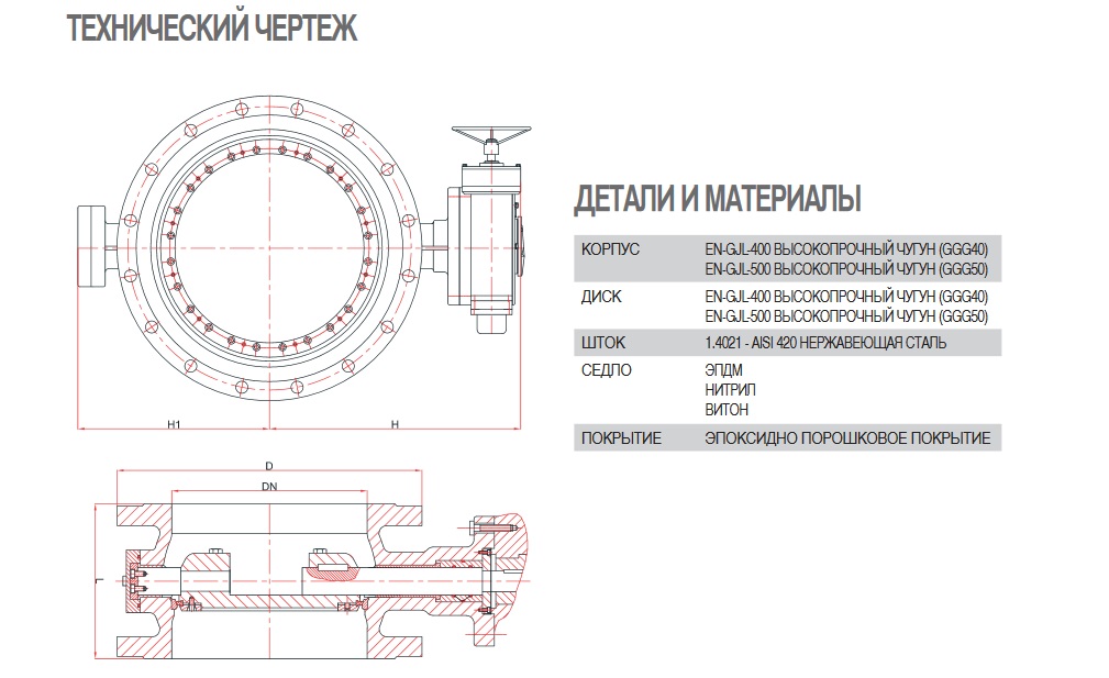 - Корпус и диск выполнены из высокопрочного чугуна, что гарантирует высокую долговечность в трубопроводе. Высокаястепеньсопротивлениягидроударам.